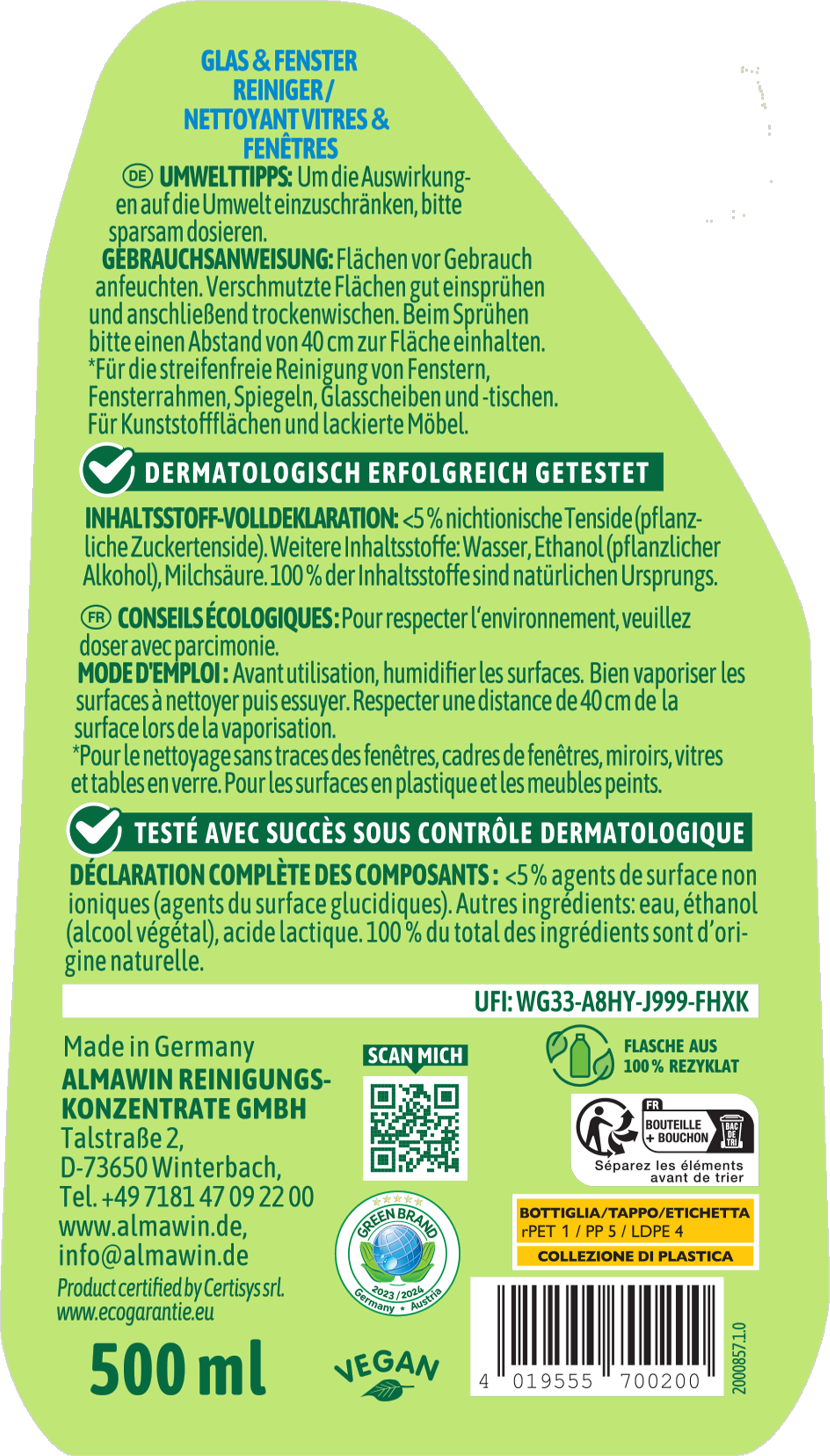 3 Erfahrungsberichte in Deutsch für AlmaWin Glas & Fenster Reiniger