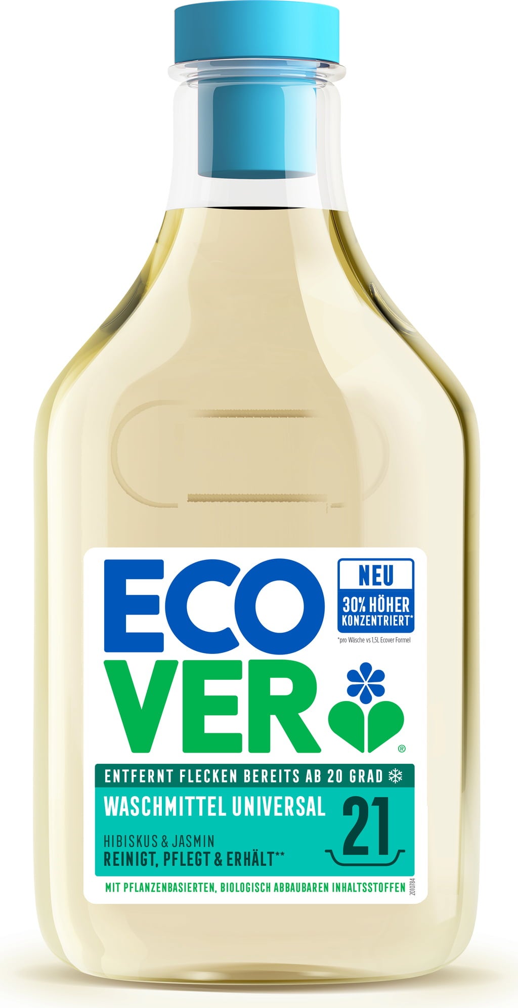 Das Universal Waschmittelkonzentrat Hibiskus & Jasmin von Ecover sorgt bereits ab einer Waschtemperatur von 20 °C für fasertief reine Weiß- und Buntwäsche!
