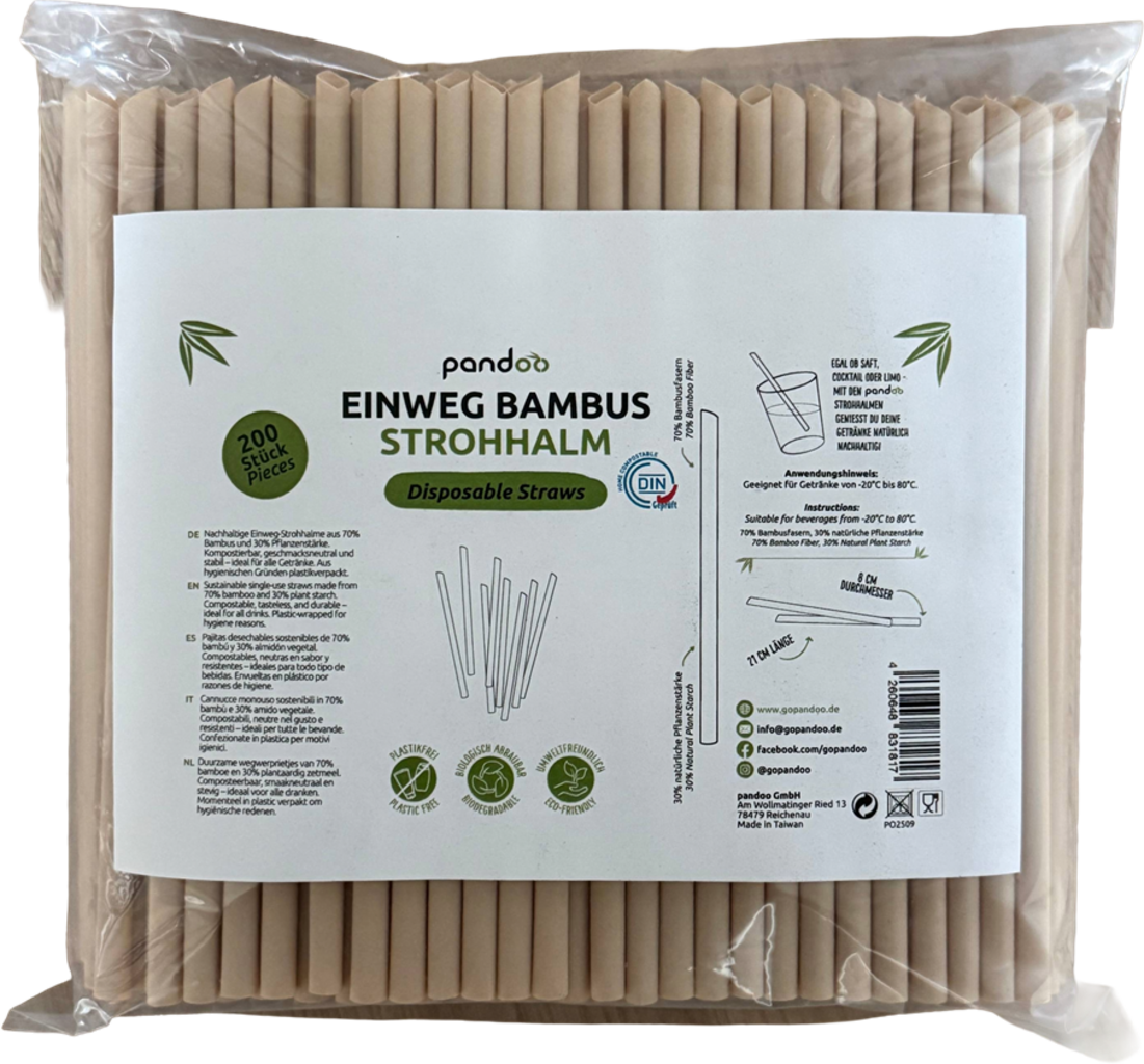pandoo Strohhalme Bambus Einweg, 200 Stk