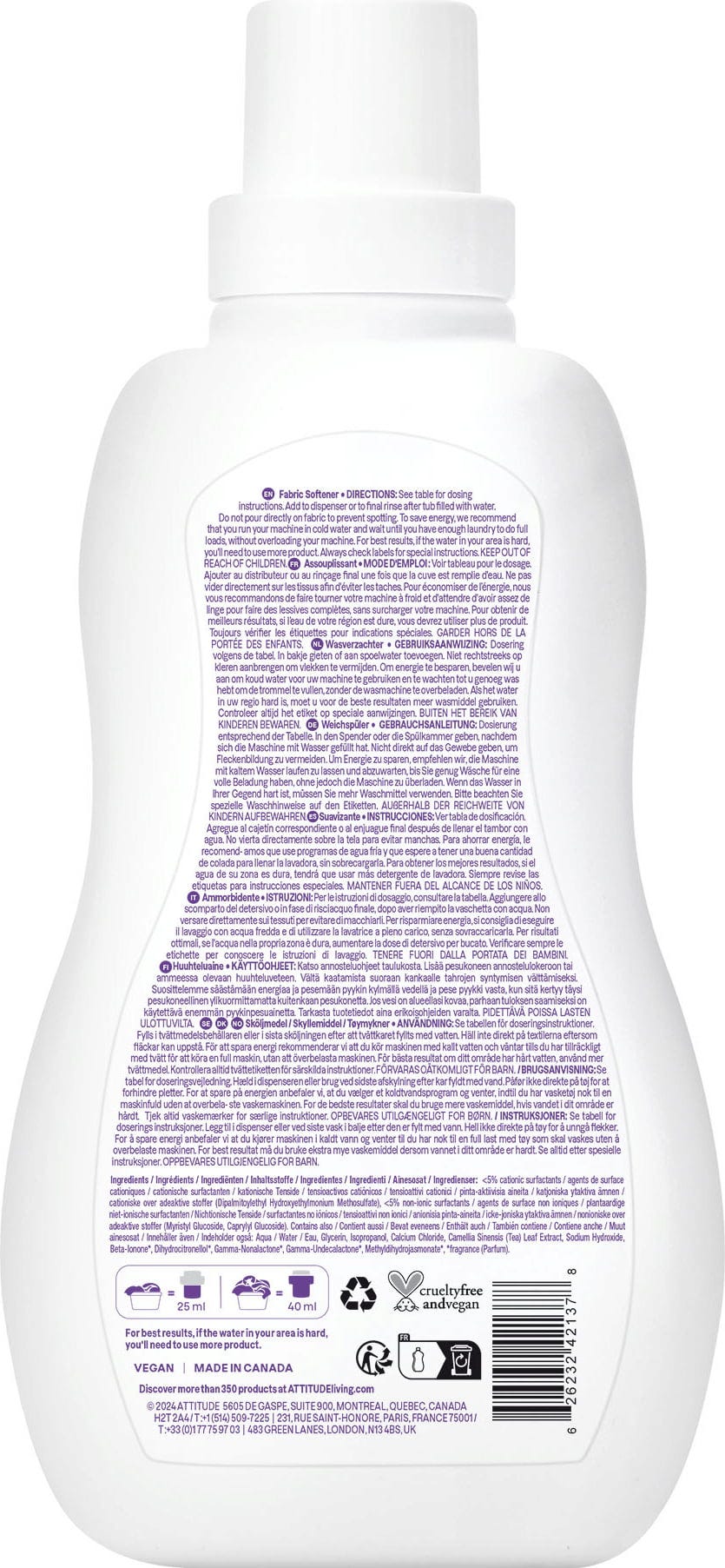 Cet assouplissant d'ATTITUDE laisse le linge des bébés et des enfants agréablement doux, au parfum fruité et fleuri.