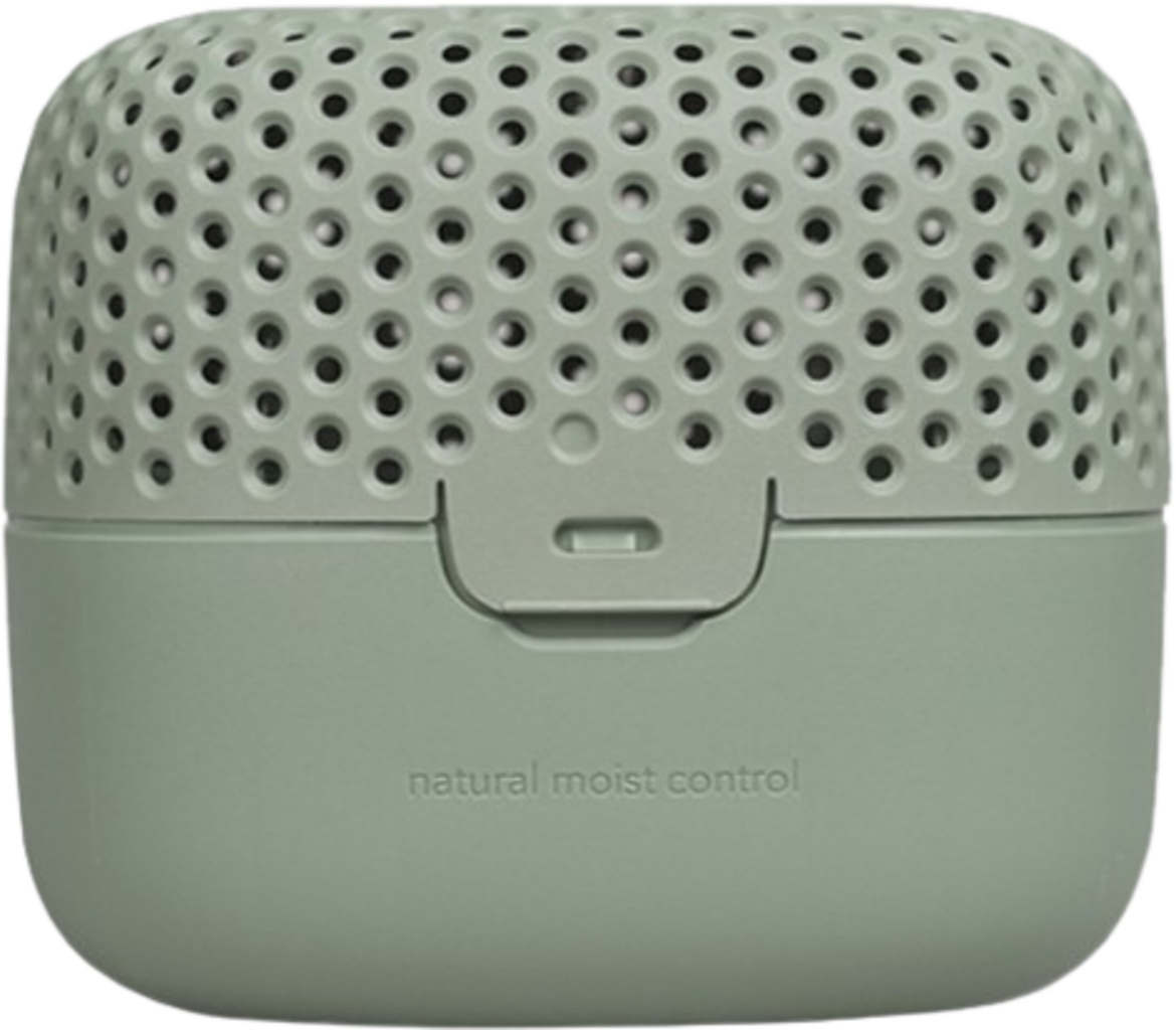 De werking is heel eenvoudig: speciale kristallen in de zak absorberen overtollig vocht uit de omgevingslucht, dat condenseert in het reservoir en regelt zo automatisch de luchtvochtigheid.