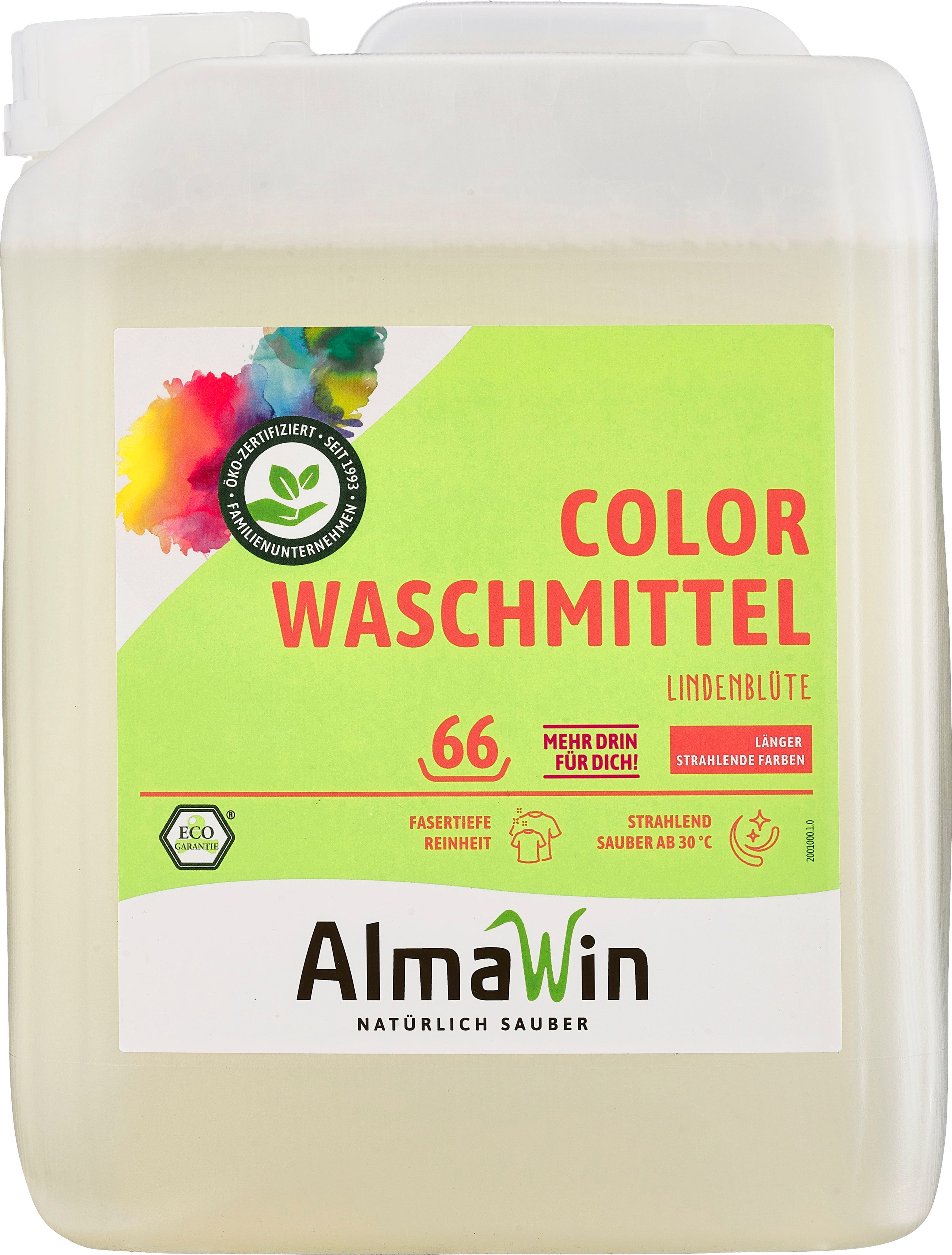 Het vloeibare wasmiddel voor gekleurde was van AlmaWin zorgt voor vezeldiepe zuiverheid van gekleurd wasgoed en langdurige kleurbriljantie. Het is enzymvrij en geschikt voor textiel van katoen, gemengde stoffen, linnen en synthetische vezels.