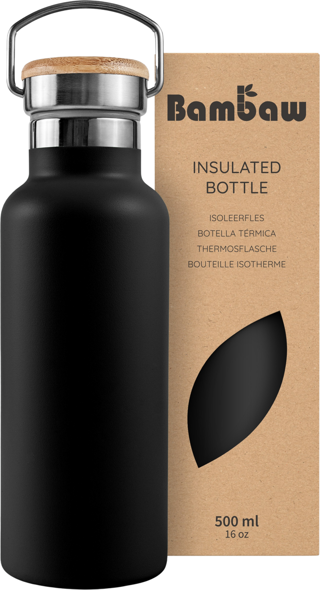 Bambaw Roestvrijstalen Thermosfles, 500 ml, Jet Black