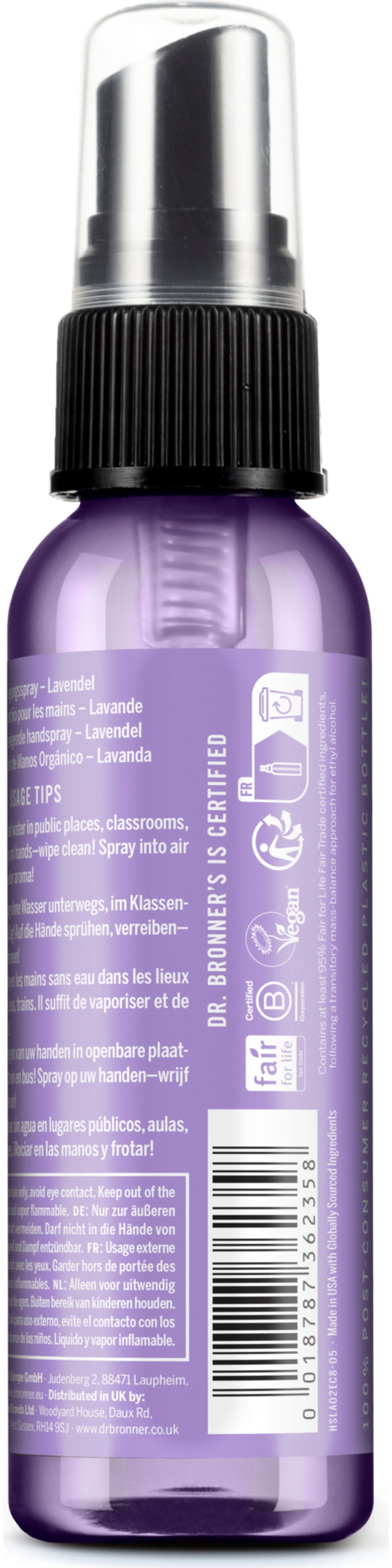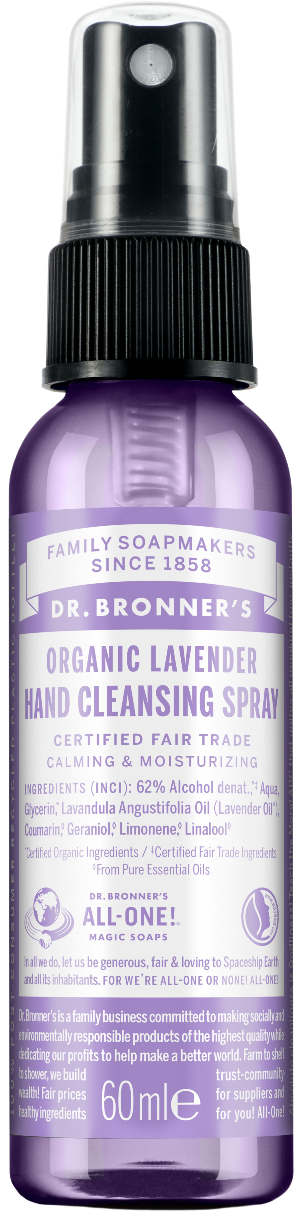 Dr. Bronner's Biologische Handhygiëne Spray Lavendel, 60 ml